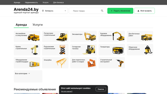 | SEO-описание | Аренда24 – единый портал, где легко взять или сдать в аренду коммерческую недвижимость, строительную технику и оборудование среди организаций и ИП по всей Беларуси. |