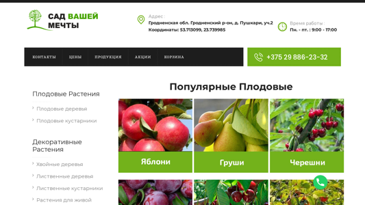 | Ключевые слова | купить саженцы купить туи смарагд саженцы яблони саженцы сливы саженцы груши саженцы вишни саженцы алычи саженцы персика саженцы абрикоса саженцы черешни опт розница гродно брест витебск гомель могилев минск |