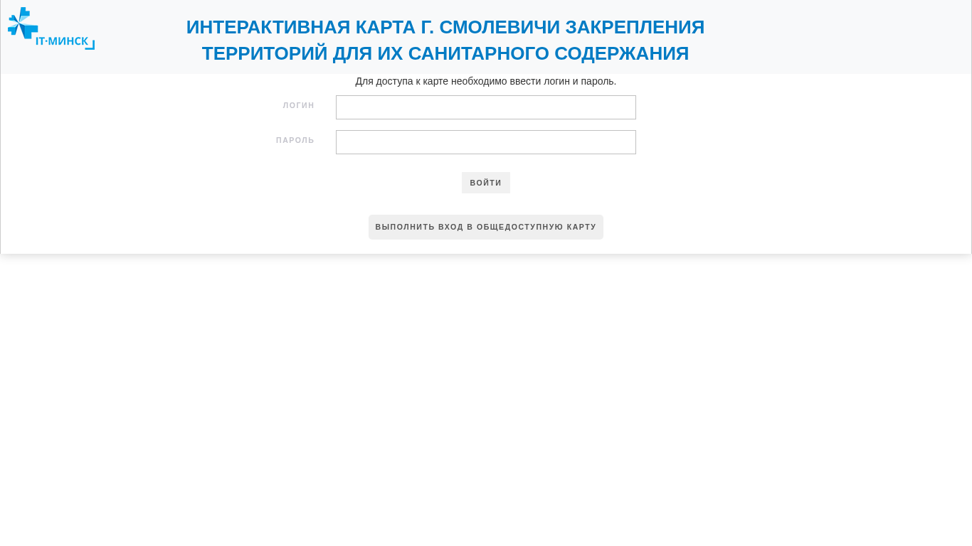 | SEO-лексика | интерактивная карта смолевичи закрепления территорий санитарного содержания логин пароль доступа карте необходимо ввести войти выполнить вход общедоступную карту |