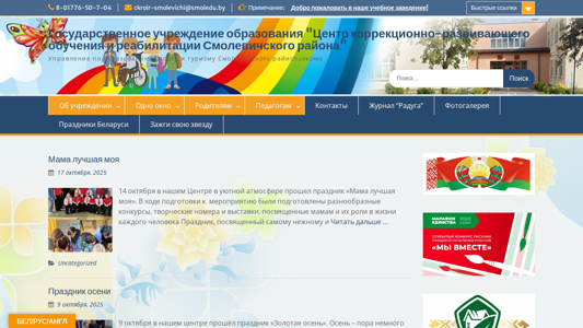 | Название / Заголовок | Государственное учреждение образования "Центр коррекционно-развивающего обучения и реабилитации Смолевичского района" – Управление по образованию, спорту и туризму Смолевичского райисполкома |