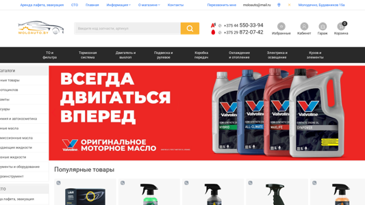 | SEO-описание | Автозапчасти, аккумуляторы, инструменты для обслуживания, электроинструмент, пневмоинструмент, химия и принадлежности для легковых автомобилей и мотоциклов в наличии и под заказ в течении двух часов в интернет-магазине moloauto.by |
