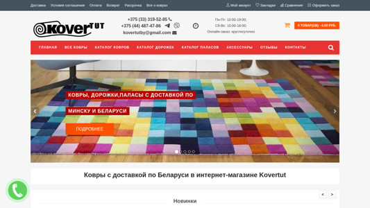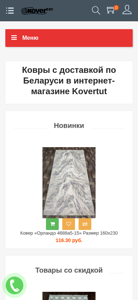 | SEO-описание | Купить ковер в Гомеле, Минске, Гродно, Бресте, Витебске и Могилеве легко с kovertut.by ✔️ Широкий выбор ковров с фото и ценами, удобный каталог и быстрая доставка по всем городам Беларуси ☎️ +375 (44) 487-47-86 (viber) |