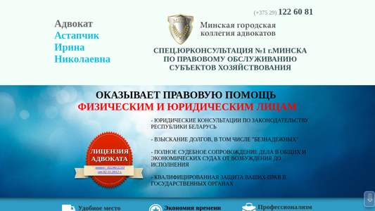 | Название / Заголовок | Адвокат Астапчик Ирина |