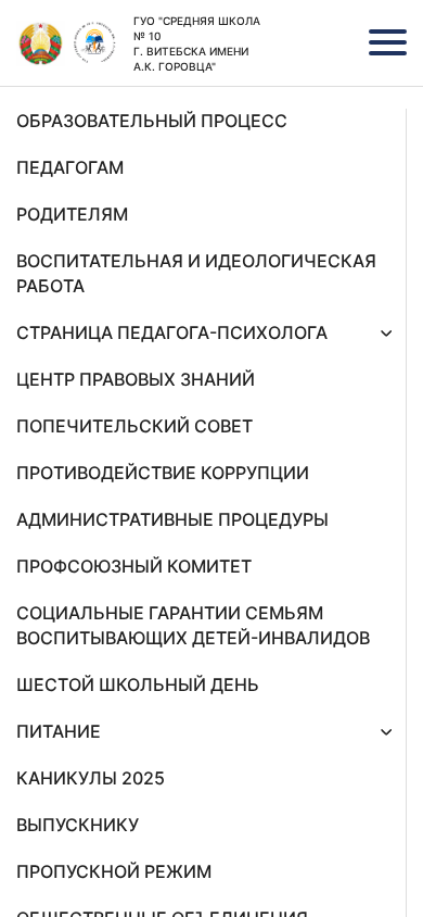 | Название / Заголовок | ГУО "Средняя школа № 10 г. Витебска имени А.К. Горовца" - |