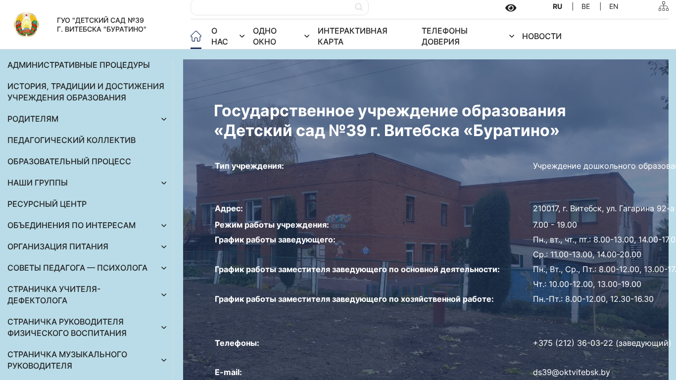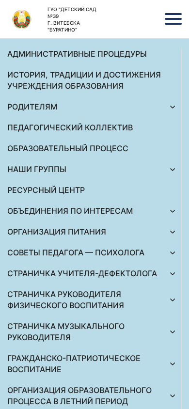 | Название / Заголовок | Главная - ГУО "Детский сад № 39 г. Витебска "Буратино" |