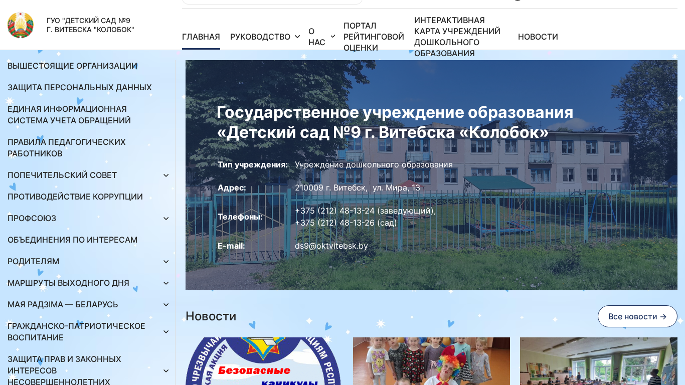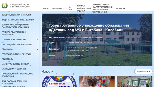 | Название / Заголовок | Главная - ГУО "Детский сад №9 г. Витебска "Колобок" |