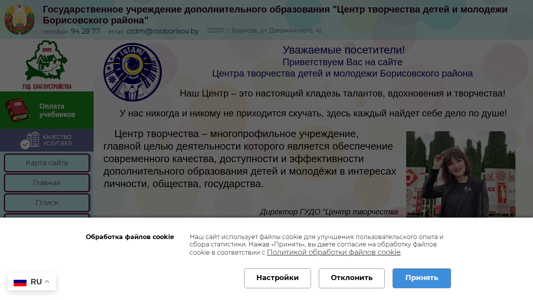 | Название / Заголовок | ГУДО "Центр творчества детей и молодежи Борисовского района" - Официальный сайт |