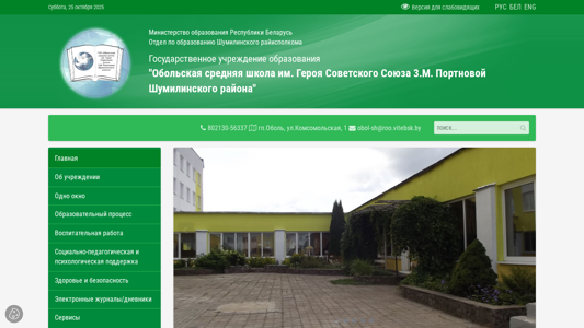 | Название / Заголовок | Обольская средняя школа им. Героя Советского Союза 3.М. Портновой Шумилинского района |
