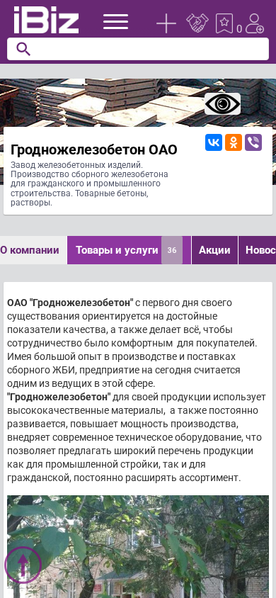 | Название / Заголовок | Гродножелезобетон ОАО - Завод железобетонных изделий. Производство сборного железобетона для гражданского и промышленного строительства. Товарные бетоны, растворы.. 230005, Гродно, , Дзержинского пер., 17 |