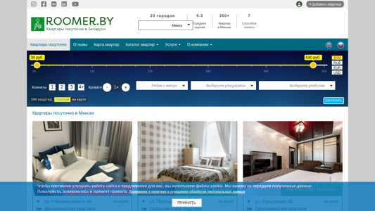 | SEO-описание | Снять квартиру в Минске на сутки. Квартиры посуточно и на часы в Минске без посредников. Гарантия бронирования. Белоснежное бельё и полотенца, средства гигиены в индивидуальных упаковках, махровые халаты и тапочки для каждого гостя. Безупречно чисто. Вежливо. Конфиденциально. |