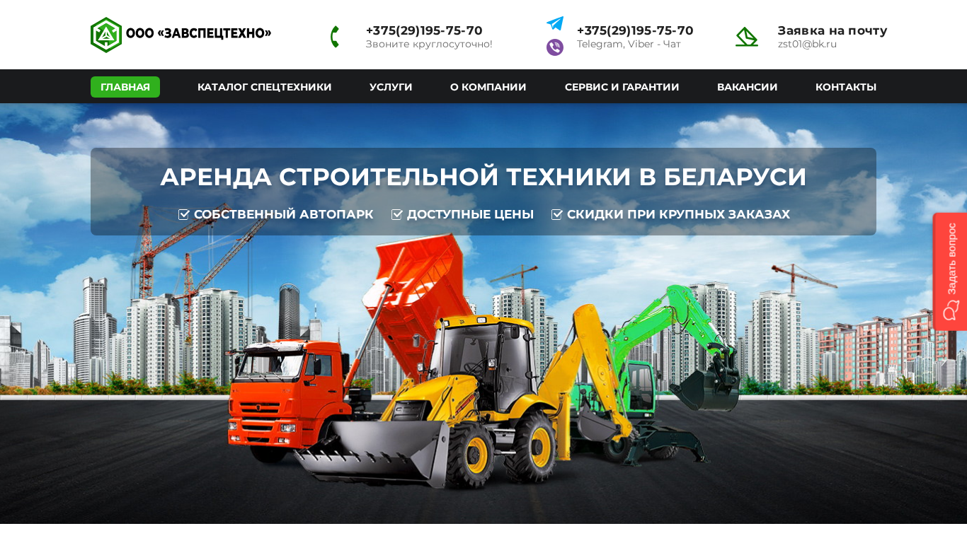 SEO-описание | Стоимость аренды спецтехники в Минске и Минской области. Выгодные цены на услуги строительной техники от компании ООО ЗавСпецТехно. Работаем 24/7. |