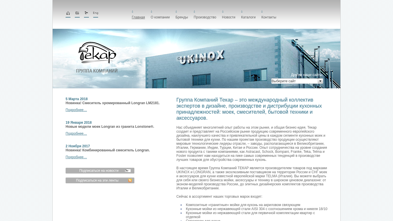 Название / Заголовок | Текар, Ukinox, Юкинокс, Longran, Лонгран, Telma, Tekar - производство моек, мойки кухонные оптом, смесители оптом. |