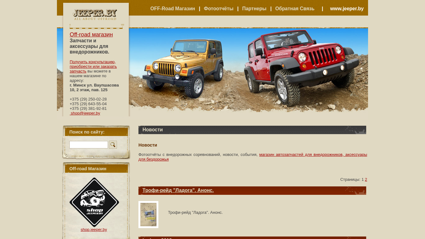 | Название / Заголовок | Off-road club Jeeper.by - Фотоотчёты с внедорожных соревнований, новости, события, магазин автозапчастей для внедорожников, аксессуары для бездорожья - www.jeeper.by |