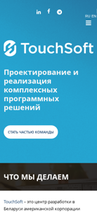 | AI-анализ | The website <http://touchsoft.by> is the official homepage of OOO Taчсофт, a software development center based in Minsk, Belarus, that is a subsidiary of Nuance Communications, an American corporation specializing in software for speech recognition, automated call processing, document management, and symbol recognition. The website provides information about the company's services, which include the design and implementation of complex software solutions to enhance online sales through the use of a contact center that supports communication with users via chat, voice calls, SMS, Facebook, and Twitter. The site features sections for the company's mission statement, a gallery of projects, a blog, contacts, vacancies, and a section on the company's history and values. The company takes pride in its team of skilled professionals and the friendly atmosphere at the workplace. They are currently developing components and modules for the RightTouch ™ ( |