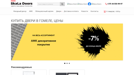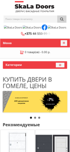 | AI-анализ | The web project "Skaladoors.by" is an online catalog for buying doors in Gomel, Belarus. The company offers in-house and interconnecting doors, with installation services available. Customers can place orders by calling +375 44 550 99 97. The site includes sections for facade decor, oblique brick, polypropylene doors, flexemal eco-shpon doors, and entry doors from ElPorta (Russia). Delivery and payment options are provided. The site also offers news, contact information, and a menu. The catalog features models made of pine and oak wood with eco-shpon coating, sliding folding (bookcase) glass doors, MDF doors, and more. The company works with manufacturers such as Magnabel (RB), StanMett (RB, Mogilev), Garda |