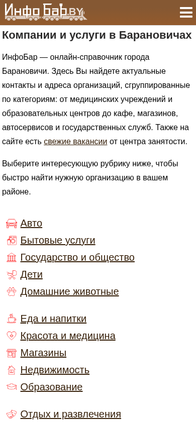 | SEO-описание | Онлайн-справочник г. Барановичи: контакты, время работы, адреса... |