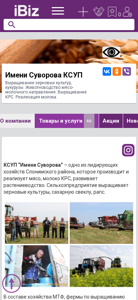 Название / Заголовок | Имени Суворова КСУП - Выращивание зерновых культур, кукурузы. Животноводство мясо-молочного направления. Выращивание КРС. Реализация молока.. 231817, , Суринка аг., Центральная, 54Б |