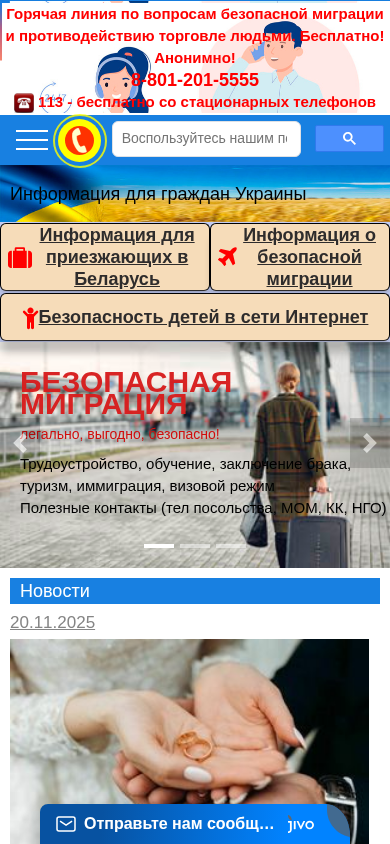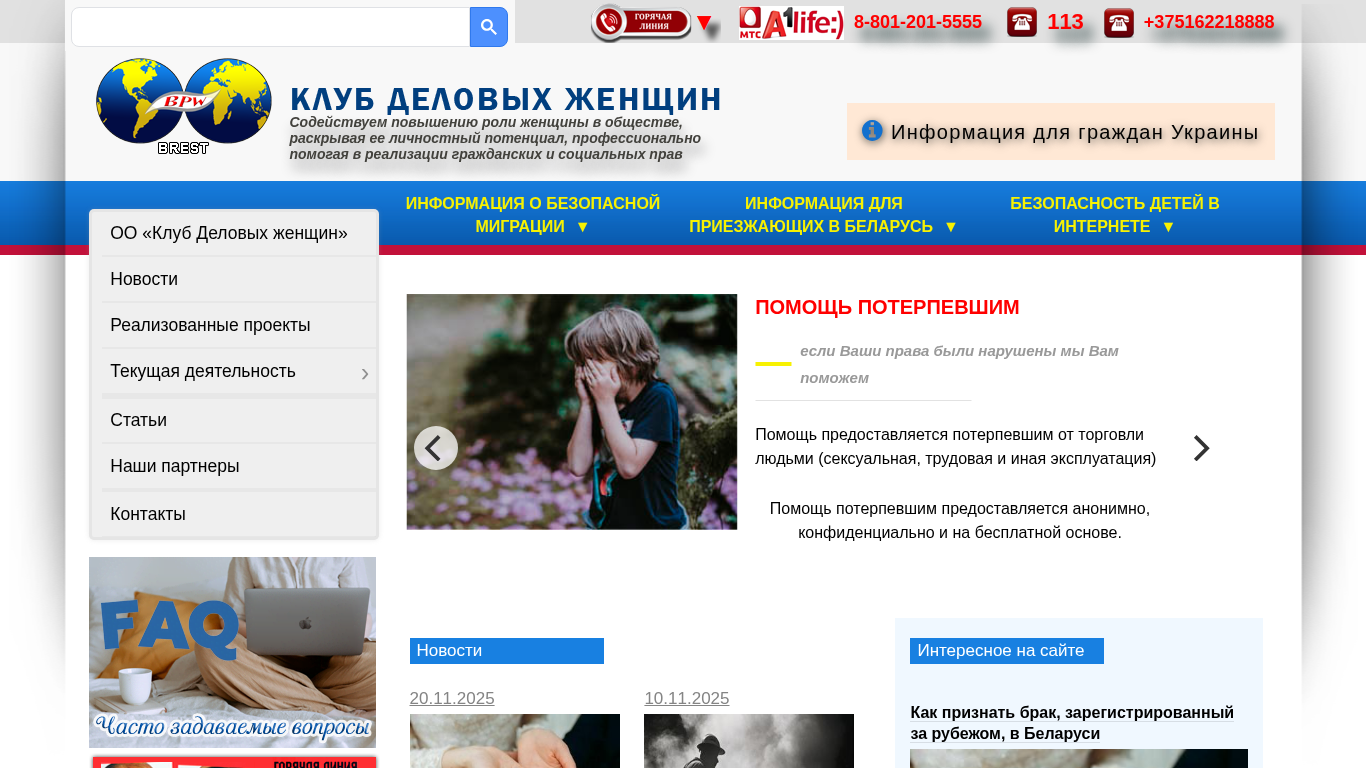 | SEO-описание | ОО «Клуб Деловых женщин». Горячая линия по безопасному выезду, пребыванию за границей и противодействию торговле людьми» Телефон 88012015555. |