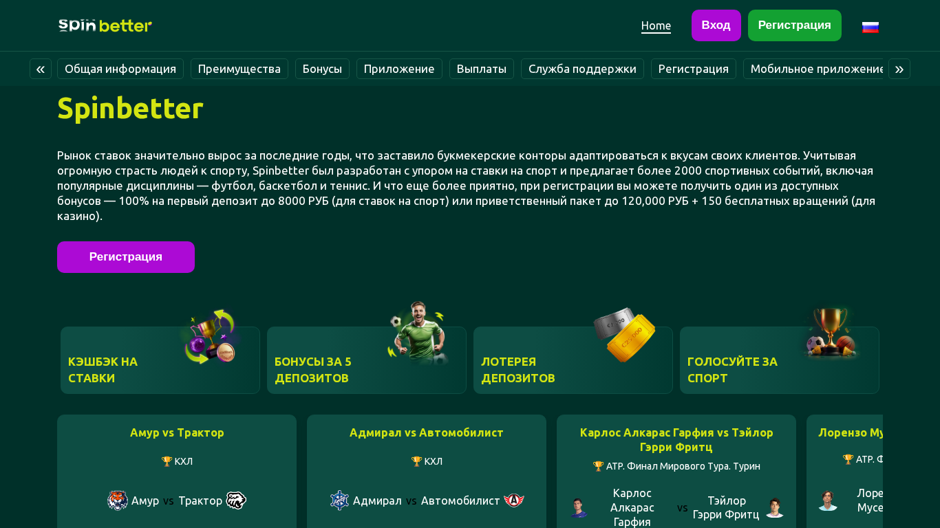 | Название / Заголовок | Spinbetter: Ваш путеводитель по миру ставок на спорт и казино |