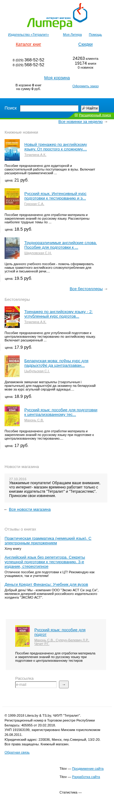 Название / Заголовок | Litera.by - Книжный интернет-магазин: книги с доставкой, книги почтой, централизованное тестирование, ВУЗы. Минск. |