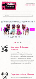 SEO-описаниеСеть парикмахерских для животных в Минске: стрижка собак и котов. Комплексный уход за шерстью: груминг, тримминг, вычесывание колтунов, обрезание когтей, чистка ушей. Одежда для собак и кошек. Курсы грумеров: обучение грумингу за короткий срок.