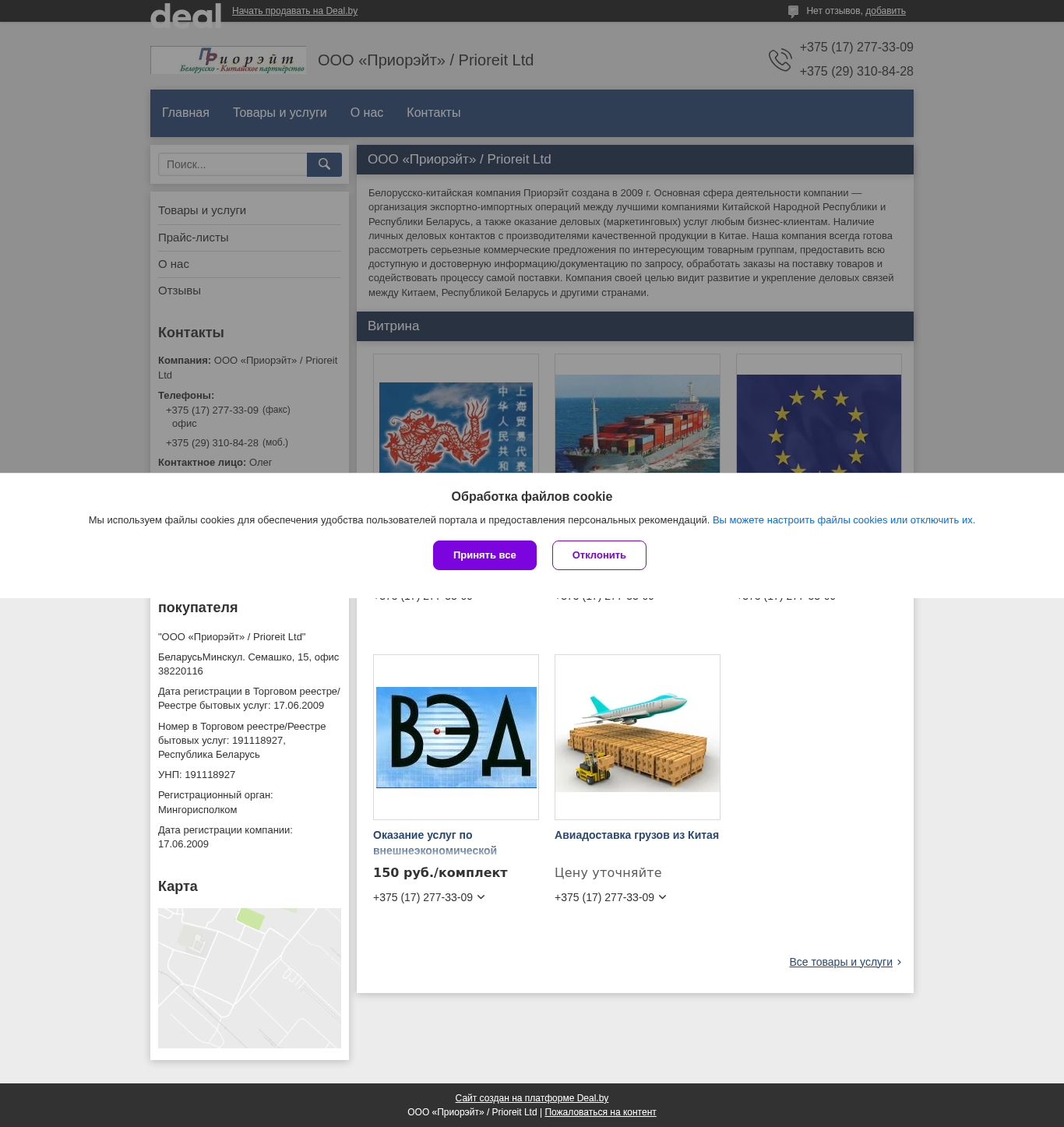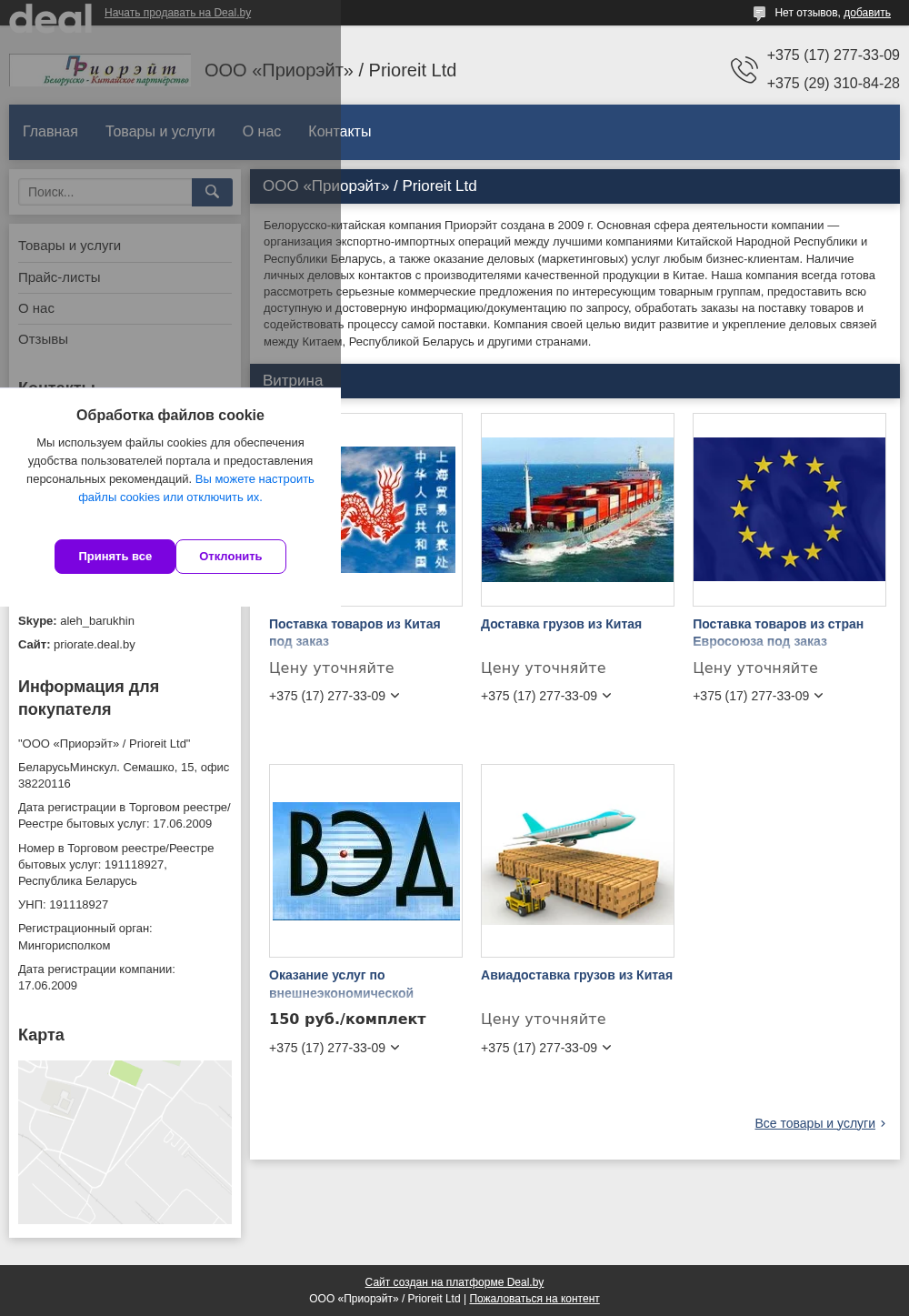 Название / Заголовок | "ООО «Приорэйт» / Prioreit Ltd" - контакты, товары, услуги, цены |