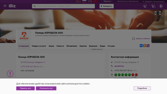 favicon Полоцк АПРОБЕЛА ООО - Услуги по пошиву/производству готовой продукции на давальческом сырье.. 211415, Полоцк, , Гагарина, 11