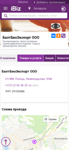 Название / Заголовок | БалтБиоЭкспорт ООО - Пиломатериалы. Щепа топливная. Оцилиндрованные изделия. Отдыха производства (опилки). . 211408, Полоцк, , Ленинградская, 105А |