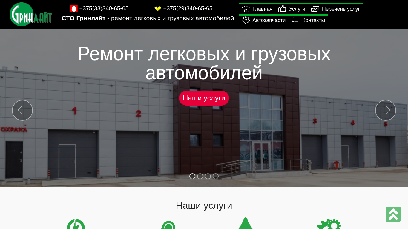 SEO-описание | СТО Гринлайт - ремонт легковых и грузовых автомобилей в ВитебскеСТО - сочетание доступной цены, надежности и высочайшего сервиса. Компьютерная диагностика, замена расходников, ремонт автоэлектрики, двигателя, подвески, подготовка авто к ТО – на нашем СТО производится ремонт и грузовых, и легковых авто любых марок. |
