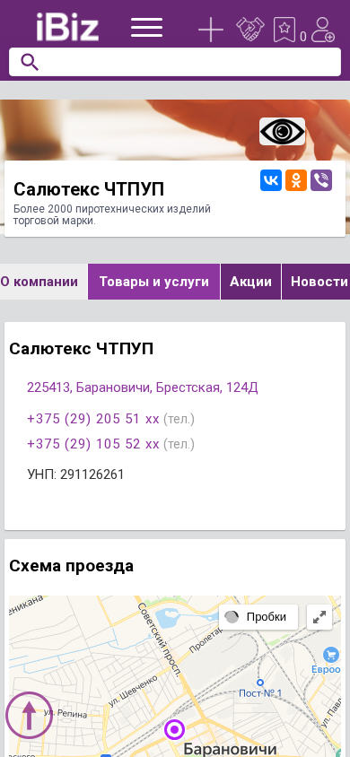 SEO-описание | Салютекс ЧТПУП - Более 2000 пиротехнических изделий торговой марки.. Схема проезда, контактные телефоны, адрес компании Салютекс ЧТПУП. 225413, Барановичи, , Брестская, 124Д |