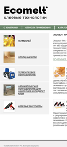 SEO-описание | Экомелт Рус – один из ведущих поставщиков клея, упаковочного оборудования, клеевых систем и оборудования для ручного и автоматизированного производств. В течение более чем 20 лет, решая поставленные Вами задачи, мы копили опыт в сфере клеевых технологий, и создали компанию, с которой выгодно и комфортно сотрудничать, что подтверждают 3500 наших клиентов по всей России и СНГ. |