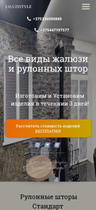 | AI-анализ | The portal jaluzistyle.by is an online shop selling roll-down shades, blinds and curtains. The website offers three main types: standard, day and night, and economical. Each type comes with various color options and adjustable light control. The shades can be installed on the window frame or directly into the wall. The shop provides free design consultation and installation services. Users can submit their requests for a quote by filling in a form with their name and phone number. By clicking the submit button, they agree to the processing of their personal data. The website is in Belarusian language and the contact email is [jaluzistyle@mail.ru](mailto:jaluzistyle@mail.ru). |