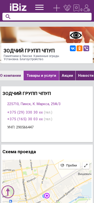 Название / Заголовок | ЗОДЧИЙ ГРУПП ЧПУП - Памятники в Пинске. Каменные ограды. Установка. Благоустройство.. 225710, Пинск, , К. Маркса, 29А/3 |