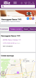 Название / Заголовок | Пинскдрев-Пинск ТУП - Мягкая мебель. Корпусная мебель. . 225700, Пинск, , Степная, 17/1 |