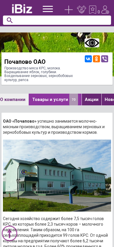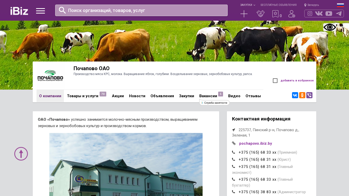 Название / Заголовок | Почапово ОАО - Производство мяса КРС, молока. Выращивание яблок, голубики. Возделывание зерновых, зернобобовых культур, рапса.. 225737, , Почапово д., Зеленая, 1 |