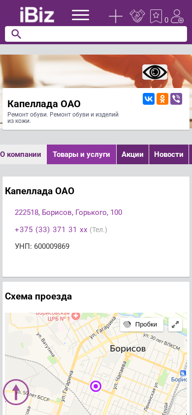 Название / Заголовок | Капеллада ОАО - Ремонт обуви. Ремонт обуви и изделий из кожи.. 222518, Борисов, , Горького, 100 |
