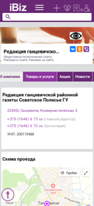Название / ЗаголовокРедакция ганцевичской районной газеты Советское Полесье ГУ - Общественно-политическая газета. Реклама в газете. Реклама на сайте.. 225432, Ганцевичи, , Коммунистическая, 5