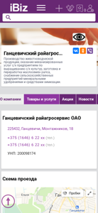 Название / Заголовок | Ганцевичский райагросервис ОАО - Производство животноводческой продукции, оказание механизированных услуг с/х предприятиям по выращиванию с/х культур, заготовка и переработка маслосемян рапса, снабжение сельскохозяйственных предприятий минеральными удобрениями и средствами химизации.. 225432, Ганцевичи, , Монтажников, 18 |
