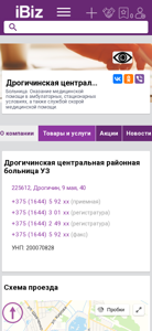 Название / ЗаголовокДрогичинская центральная районная больница УЗ - Больница. Оказание медицинской помощи в амбулаторных, стационарных условиях, а также службой скорой медицинской помощи.. 225612, Дрогичин, , 9 мая, 40