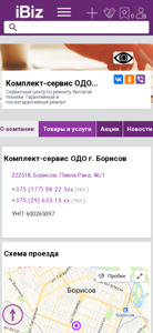 Название / Заголовок | Комплект-сервис ОДО г. Борисов - Сервисный центр по ремонту бытовой техники. Гарантийный и послегарантийный ремонт.. 222518, Борисов, , Павла Рака, 46/1 |