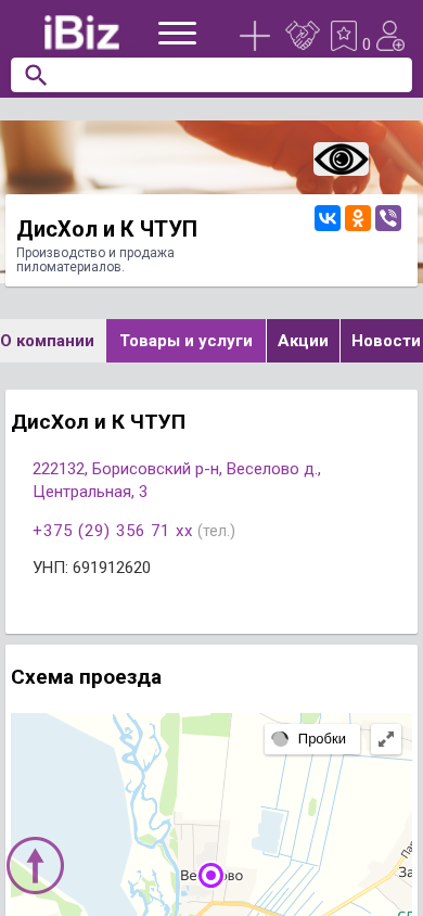 Название / ЗаголовокДисХол и К ЧТУП - Производство и продажа пиломатериалов.. 222132, , Веселово д., Центральная, 3