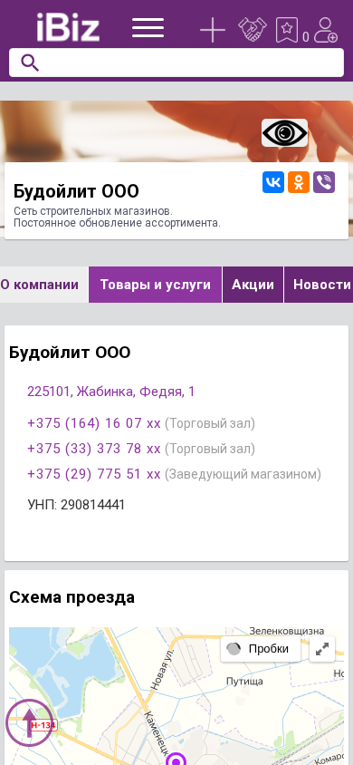 SEO-описание | Будойлит ООО - Сеть строительных магазинов. Постоянное обновление ассортимента.. Схема проезда, контактные телефоны, адрес компании Будойлит ООО. 225101, Жабинка, , Федяя, 1 |