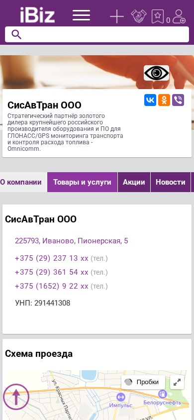 Название / Заголовок | СисАвТран ООО - Cтратегический партнёр золотого дилера крупнейшего российского производителя оборудования и ПО для ГЛОНАСС/GPS мониторинга транспорта и контроля расхода топлива - Omnicomm.. 225793, Иваново, , Пионерская, 5 |