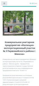 SEO-описание | Коммунальное унитарное предприятие «Жилищно-эксплуатационный участок № 3 Первомайского района г. Минска» (далее – Предприятие) зарегистрировано в Едином |