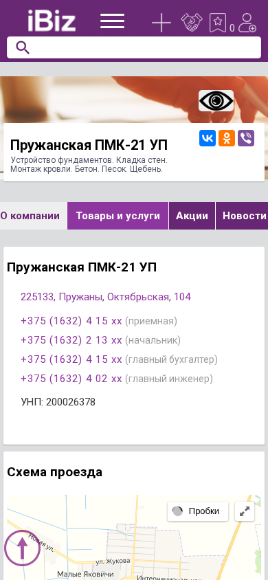 Название / ЗаголовокПружанская ПМК-21 УП - Устройство фундаментов. Кладка стен. Монтаж кровли. Бетон. Песок. Щебень.. 225133, Пружаны, , Октябрьская, 104