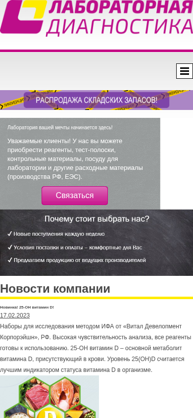 SEO-описаниеЛабораторная Диагностика: в продаже реагенты, тест-полоски, контрольные и расходные материалы, посуда для лаборатории (производства РФ, ЕЭС).
