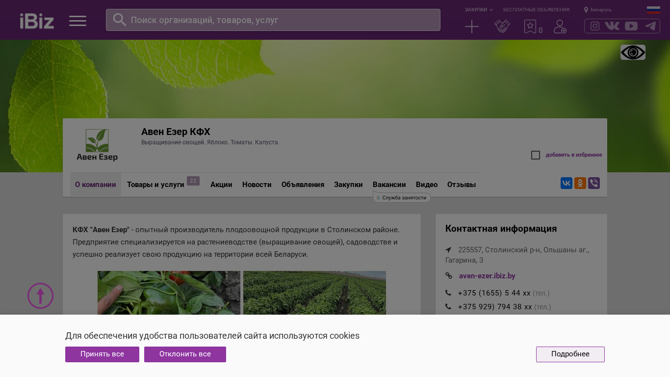 SEO-описание | Авен Езер КФХ - Выращивание овощей. Яблоко. Томаты. Капуста.. Схема проезда, контактные телефоны, адрес компании Авен Езер КФХ. 225557, , Ольшаны аг., Гагарина, 3 |