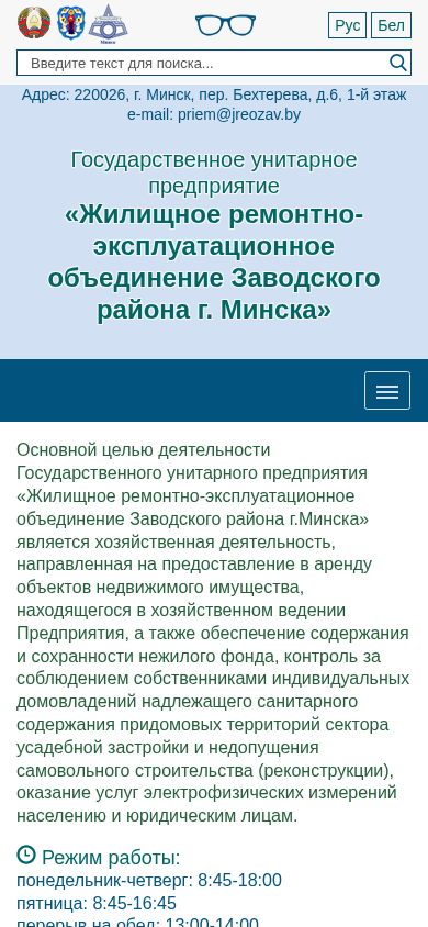 SEO-описание | ЖРЭО. Официальный сайт УП «Жилищное ремонтно-эксплуатационное объединение Заводского района г. Минска» |