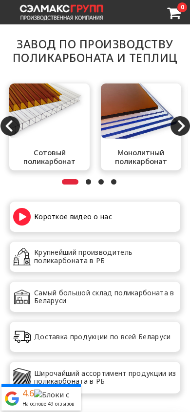 SEO-описание | ООО «Сэлмакс Групп ПК» - завод по производству поликарбоната, теплиц и других изделий из поликарбоната и металлоконструкций. Первый поставщик водосточных систем Galeco(Польша), прозрачного шифера Salux(Германия) |