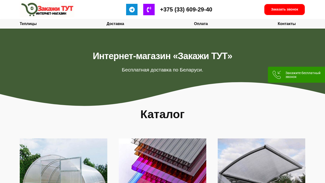 SEO-описание | Интернет-магазин «Закажи ТУТ» - продажа теплиц и беседок из поликарбоната, каркасов теплиц, сотового поликарбоната, комплектующих для монтажа поликарбоната. |